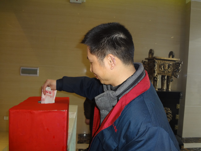 小張是本公司生產(chǎn)部員工,因小孩突發(fā)疾病而入院,昂貴的手術(shù)費和醫(yī)藥費對本來就不富裕的一家無疑是雪上加霜。得知這一情況后,公司高層管理立即發(fā)出獻愛心捐款倡議書,得到了廣大員工的熱烈響應(yīng),公司領(lǐng)導率先垂范,帶頭捐款,大家都主動從自己的工資里拿出二百、一百、五十、二十.....沒有儀式,沒有渲染,卻有一股暖流在恒立公司內(nèi)涓涓流淌。短短的一個小時,共募集捐款1萬2千余元,更為感人的是,來公司提貨的郭師傅聽說小張的情況之后,當即拿出了50元,主動獻上自己的一份愛心。次日早上公司行政部將所有捐款及時遞交到了小張家人的手中。