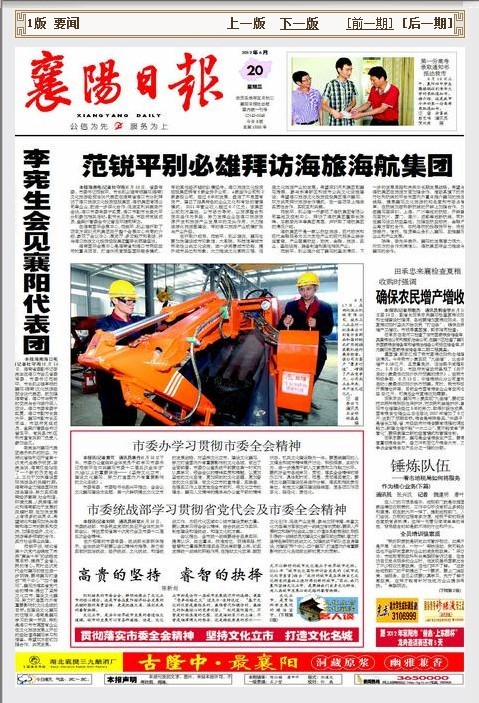 襄陽日報(bào)版刊登我廠發(fā)展情況