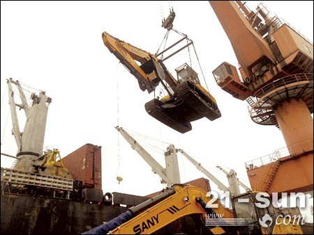 三一挖掘機(jī)裝船,準(zhǔn)備發(fā)往非洲