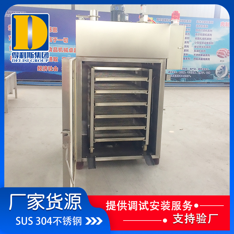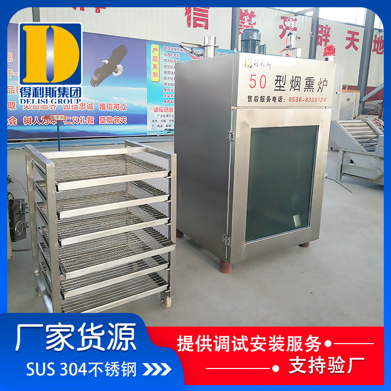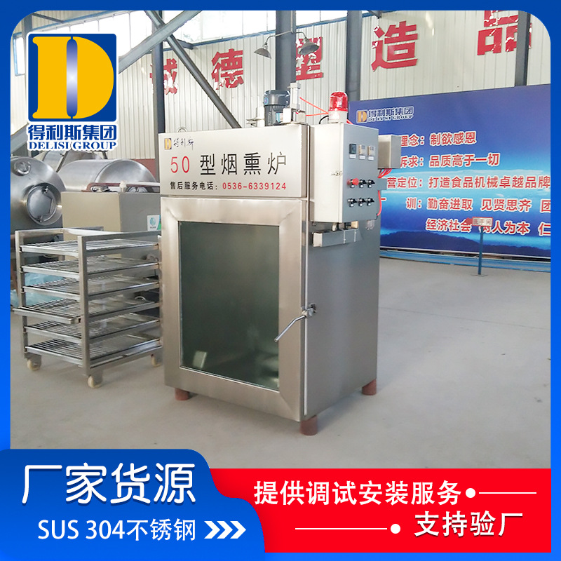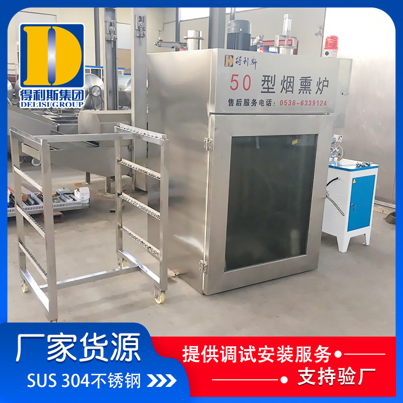 全自動(dòng)煙熏爐的發(fā)煙系統(tǒng): 外置式木粒、木屑發(fā)煙系統(tǒng),不僅使產(chǎn)品產(chǎn)生果木香氣,而且可以使產(chǎn)品熏成由淺入深的金黃色。外置全自動(dòng)煙熏爐分體式糖爐發(fā)煙系統(tǒng),可熏制傳統(tǒng)的中式產(chǎn)品,產(chǎn)生糖熏味道,并且顏色可以控制,深可以成為棗紅色。兩種發(fā)煙系統(tǒng)同時(shí)使用能產(chǎn)生煙熏香氣和顏色。門上木粒發(fā)煙系統(tǒng),采用世界上先 進(jìn)的內(nèi)循環(huán)發(fā)煙工藝,低氧狀態(tài)發(fā)煙,縮短煙道長度,降低能耗,減少設(shè)備占地面積。材質(zhì)、保溫 箱體結(jié)構(gòu)以單車為單元,可以拼裝成不同的組合。材質(zhì)采用進(jìn)口SUS304不銹鋼拉絲扳。保溫層采用進(jìn)口聚氨酯保溫材料,耐高溫一次成型,保溫性能好。控制元器件 PLC、人機(jī)界面、電磁閥等關(guān)鍵元器件采用進(jìn)口產(chǎn)品。加熱方式 采用外接蒸汽加熱或電加熱方式。配備在線清洗系統(tǒng)。門鎖和門合頁及密封條設(shè)計(jì)合理,密封嚴(yán)密,操作方便。生熟區(qū)門互鎖,區(qū)域隔離,符合HACCP要求。