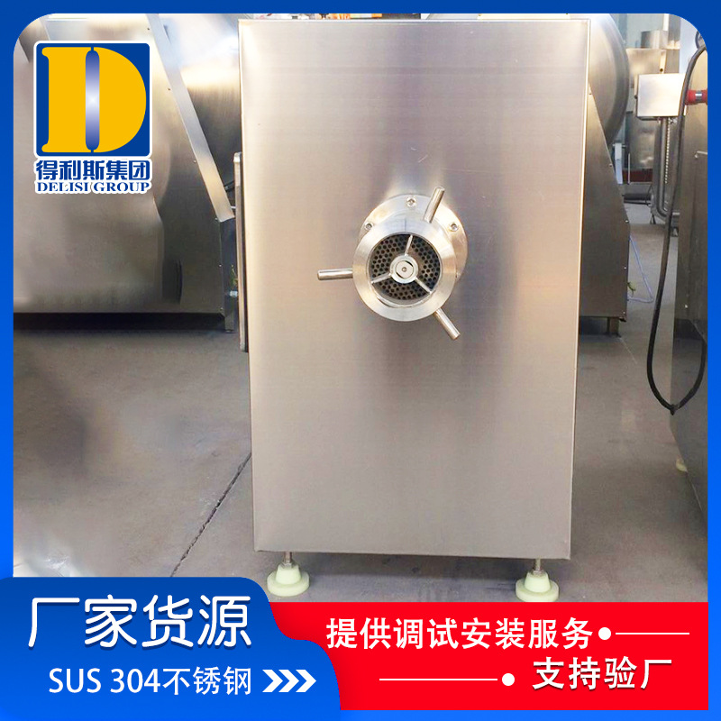 3、凍肉絞肉機是肉制品生產(chǎn)行業(yè)中通用性高使用范圍廣的種肉食加工設備。它是依靠螺旋桿將料斗箱中的原料肉推到預切板處,通過螺桿的旋轉(zhuǎn)擠壓使用孔板與鉸刀產(chǎn)生相對運轉(zhuǎn),從而將原料肉切成顆粒塊狀,確保了肉餡的均勻性。